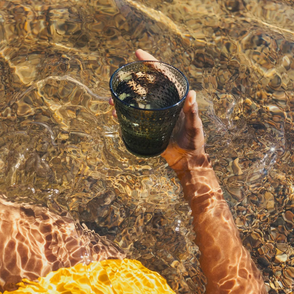 Kastehelmi-serien, designad av Oiva Toikka, är känd för sin unika och vackra design. Ytan på glasen är dekorerad med daggdroppar, vilket ger fin karaktär till alla dukningar. Den vackra ytan med daggdroppar har både en estetisk och en teknisk funktion. 1964 utvecklade Oiva Toikka en ny typ av ytstruktur för att dölja fogmärken i pressat glas. Kastehelmi leker med ljus och har blivit en av Toikkas mest älskade serier. Det mångsidiga dricksglaset (30 cl) passar många olika tillfällen. Det är inspirerat av naturen och den nya färgen tallgrön ger ett fräscht och harmoniskt intryck. Dricksglasen är tillverkade i Finland och tål maskindisk. Ett set innehåller två dricksglas (30 cl).