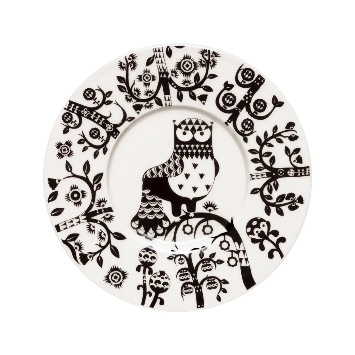 När manKombinerar Heikki Orvolas design med Klaus Haapaniemis konst får man en dukning som drar blickarna till sig. Tallrikens färger i svart och vitt är alltid ett stilrent val. Skapa din egen stil genom attKombinera olika delar och färger från Taika-kollektionen.