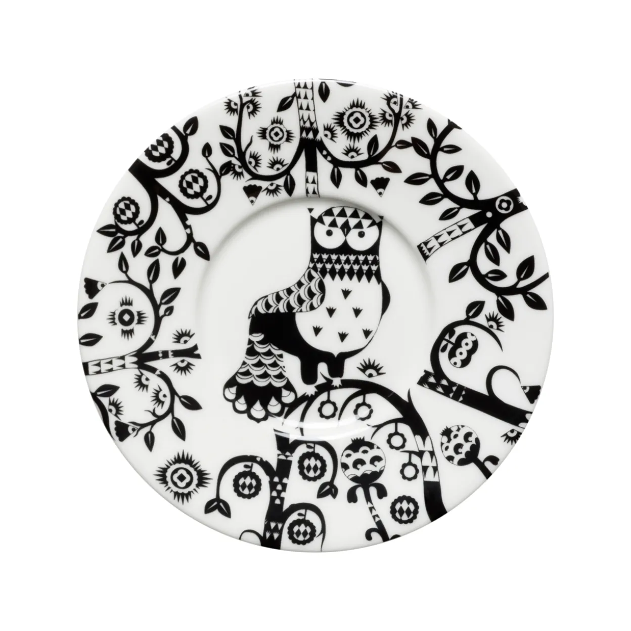 Taika (magi på finska) är en lekfull blandning av Klaus Haapaniemis mycket fantasifulla konst och Heikki Orvolas rena design. Resultatet är en magisk serie som inspirerar till kreativitet och sagoberättande i en enkel och ren design. De färgstarka karaktärerna livar upp vardagen med folklore och sagor: Den tåliga porslinsservisen kan användas till mycket och passar varje dukning. Kaffe-/cappuccinokoppen i Taika-serien ger varje kaffestund en förtrollad touch. Kombinationen av svart och vitt framhäver det rika ugglemönstret runt hela koppen. Matchar det 15 centimeter stora fatet perfekt.