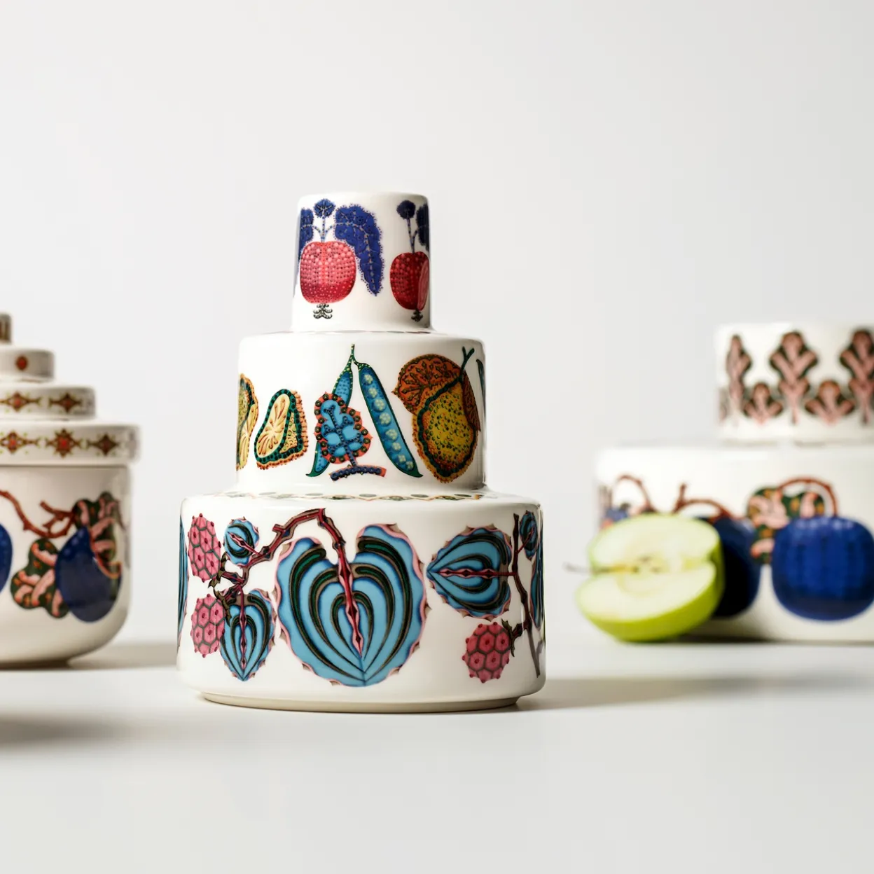 Historien bakom den omtyckta Taika-kollektionen fortsätter med lanseringen av Taika Sato, en kollektion med porslin och inredningsdetaljer. Den nya kollektionen består av färgstarka och vackert detaljerade konstverk av Taikas designer Klaus Haapaniemi. Mönstret på Taika Sato (”skörd” på finska) föreställer frukter och grönsaker och är en fortsättning på den utpräglade Haapaniemi-stilen.