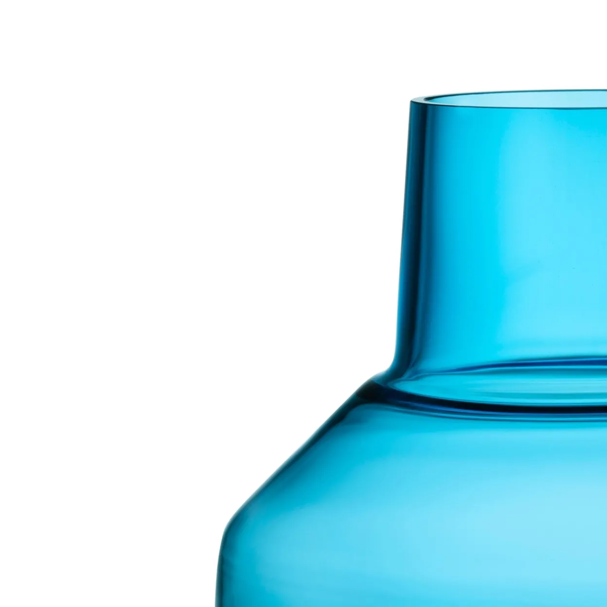 Den låga Solare-vasen på 220×200 mm i en elektriskt blå säsongsfärg ger ett djärvt uttryck med en iögonfallande nyans och rena, futuristiska former. Den är munblåst på Iittala glasbruk i Finland och representerar hantverk på högsta nivå, där industriell precision kombineras med yppersta hantverksskicklighet. Den livliga elektriskt blå färgen framhäver vasens eleganta silhuett och skapar ett dynamiskt blickfång i alla slags moderna rum. Vasen är utformad för större buketter och lyfter blomsterarrangemanget samtidigt som den reflekterar och fångar ljus på ett sätt som förändrar miljön den står i. Vare sig den placeras på ett matbord eller blir ett skulpturalt designelement på en hylla tillför Solare-vasen en elektrisk känsla i din inredning.