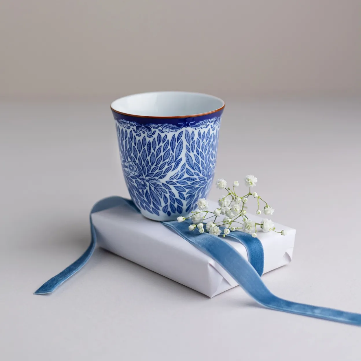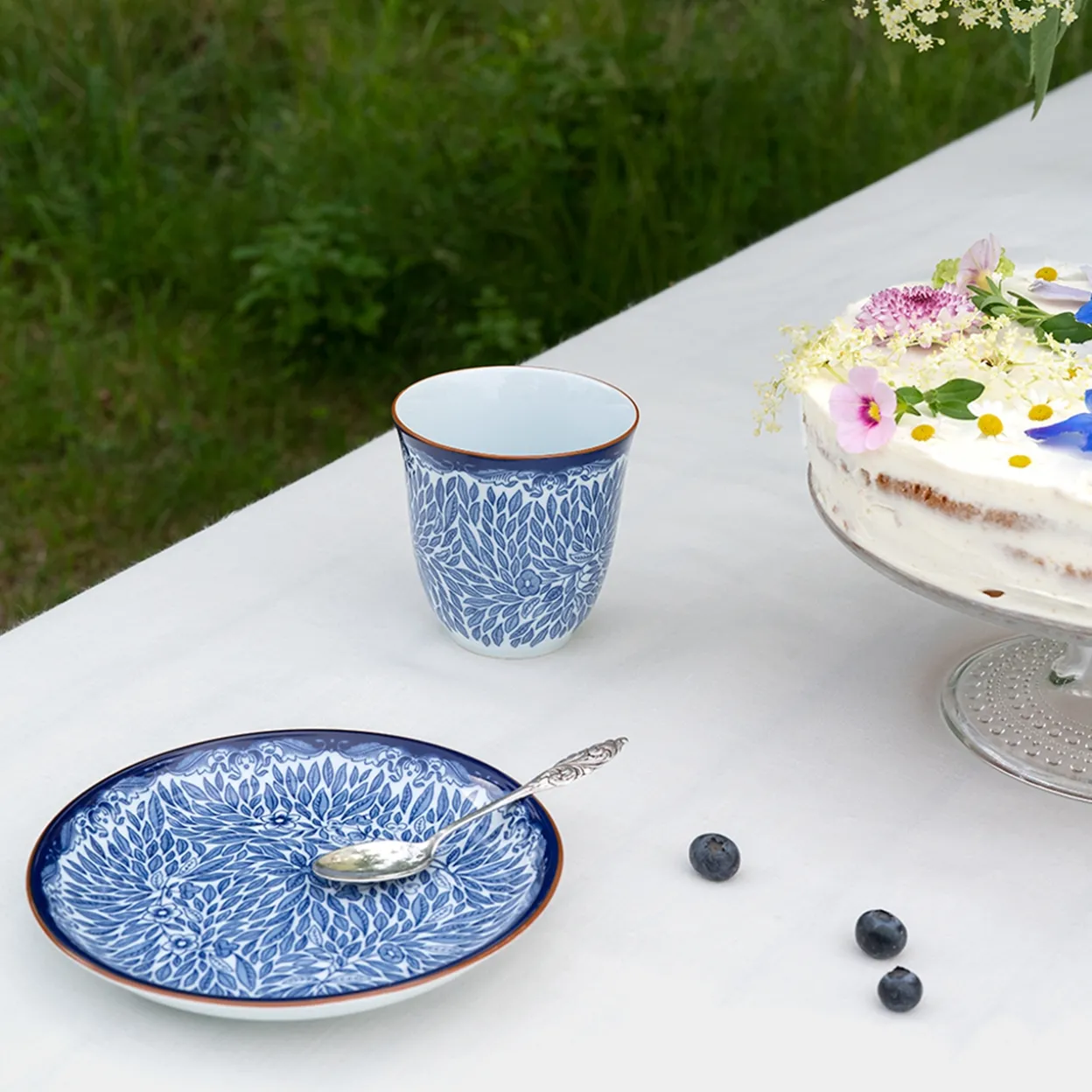 Ostindia Floris utökas nu med en elegant mugg (30 cl) utan hänkel där det djärva bladverket sprider sig runt muggen. Caroline Slotte har skapat mönstret och muggen passar perfekt till te, latte eller en stor kopp kaffe! Låt den djärva designen bli en del av frukostritualen eller en fascinerande dukningsdetalj. Fin även som gåva till samlaren.