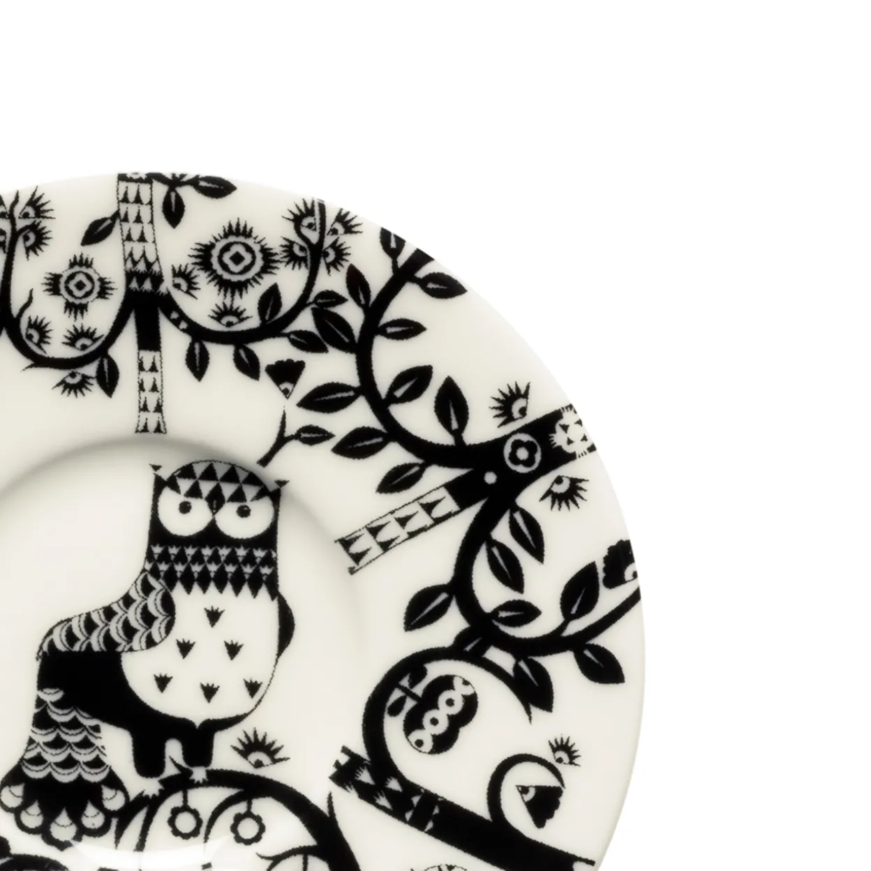 I Taika (magi på finska) kombineras designern Klaus Haapaniemis egensinniga konst med funktionell design. Resultatet är en förtrollande serie som hyllar folklore och sagor i en enkel och ren design. De färgstarka karaktärerna livar upp vardagen med berättelser och fantasi. Den tåliga servisen kan användas till mycket och ger varje dukning en touch av magi. De uppsvängda kanterna gör det lilla Taika-fatet perfekt för espressokoppar. Den svarta färgen framhäver fatets livfulla ugglemönster. Matchar espressokoppen i Taika-serien perfekt. Skapa roliga kombinationer genom att mixa och matcha olika färger. Samla på alla delar. En mycket uppskattad present.