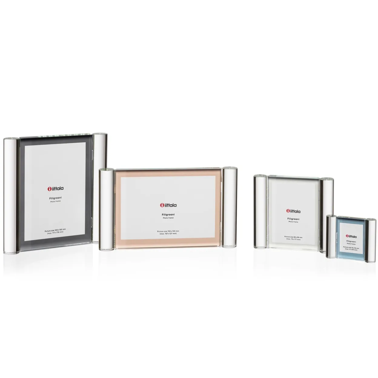 Franska designern Inga Sempés nya Filigran-serie innehåller eleganta fotoramar i glas för att bevara dina värdefulla minnen. Fotoramen i ministorlek är perfekt för passfoton eller andra små bilder. Miniatyrporträttramen har blå bakgrund. En omtänksam gåva som håller älskade minnen.